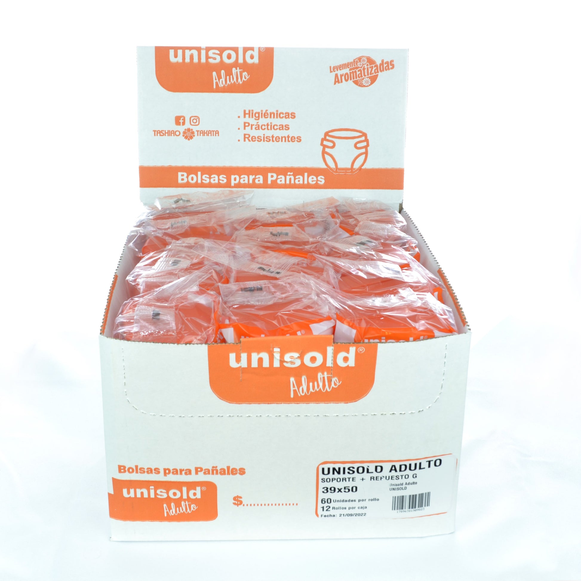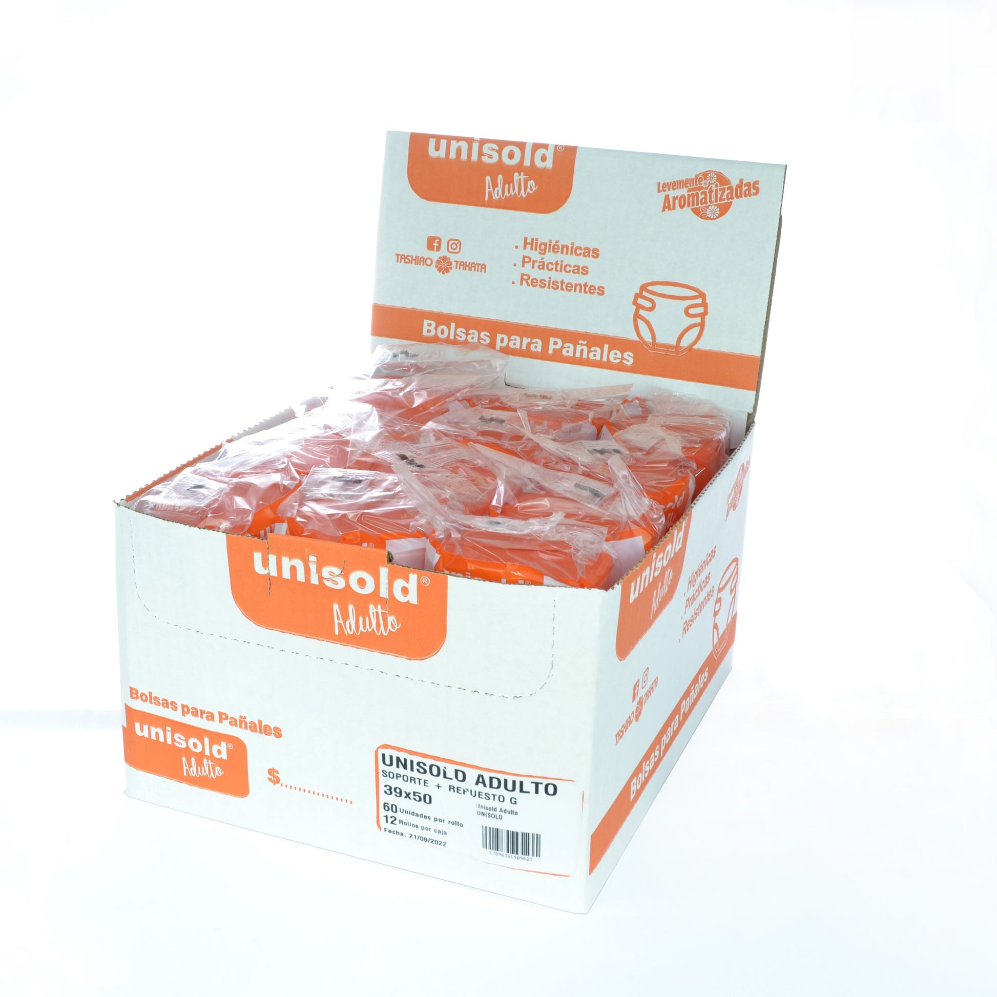 Bolsas Para Pañales Adultos C/soporte 39x50 cm Caja: 12 Rollos X 60 bolsas c/u